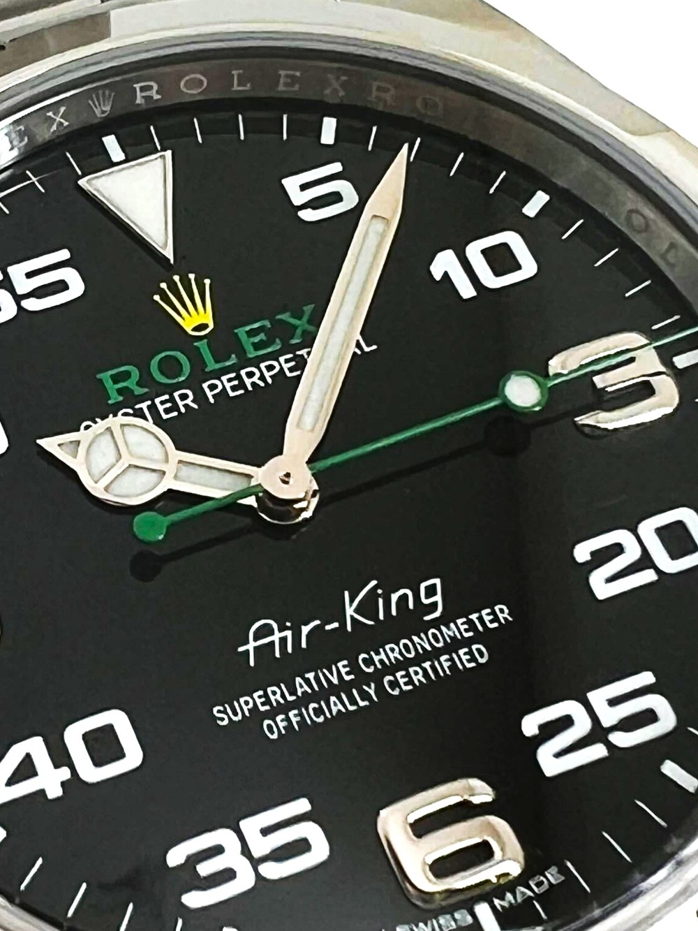 王冠マークが7イエロー、ダイアル表記と秒針がグリーンというデザイン性も特別感があります。