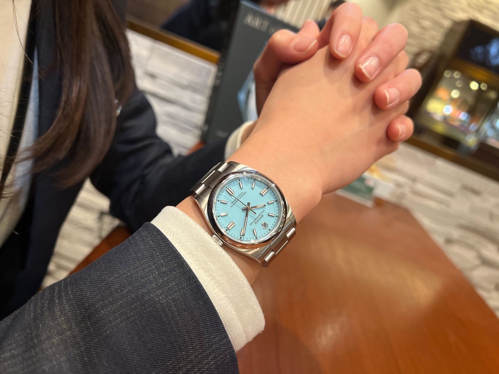 写真の商品は36㎜径のRef.126000で女性には少し大きめなサイズになりますが、いかがでしょうか。