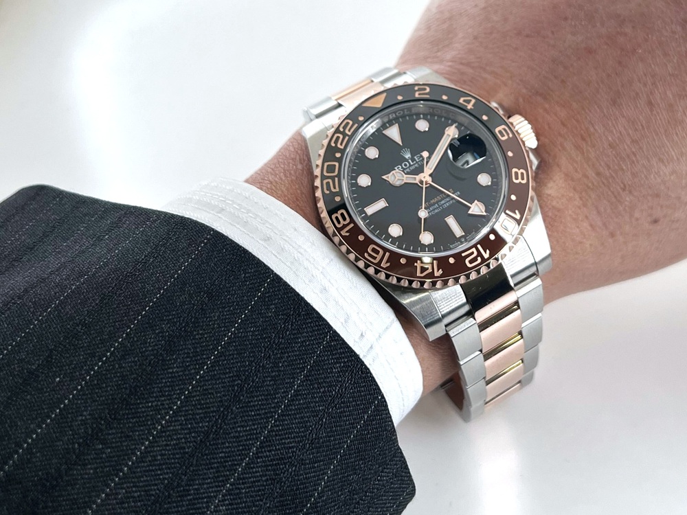 発売当初より話題性、人気が衰えないGMTマスターIIのコンビモデルです。
